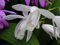 紫紅色の花色から名づけられた。 でも白い花も紫蘭というのが面白い。 |